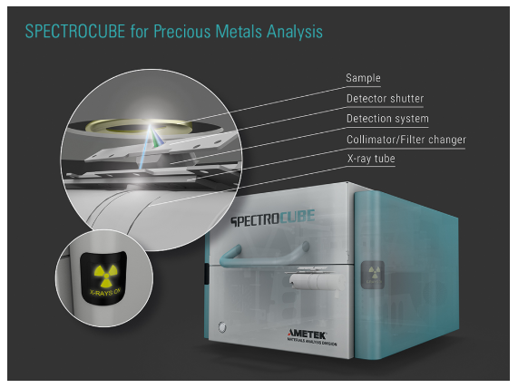 The new SPECTROCUBE ED-XRF analyzer for precious metals testing delivers easy, reliable, accurate, high-throughput analysis for testing centers, hallmarking and assay offices, and jewelry makers — at twice the speed of other analyzers in its class.